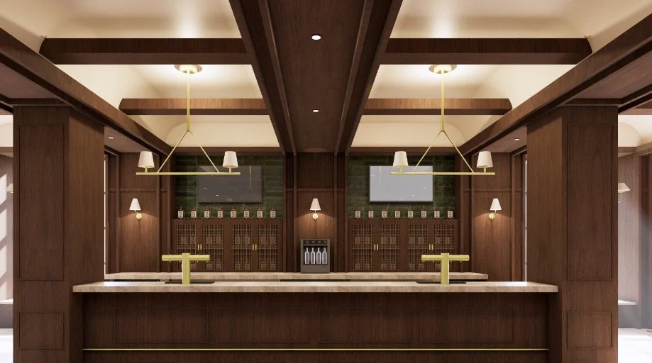 The original concept emphasized the warmth, character, and craftsmanship of Keeneland’s heritage. Limestone textures, timber-inspired detailing, and a neutral, inviting palette guided the design. The goal was to create a room that felt rooted in tradition while offering the functionality and finishes expected in a modern hospitality space.